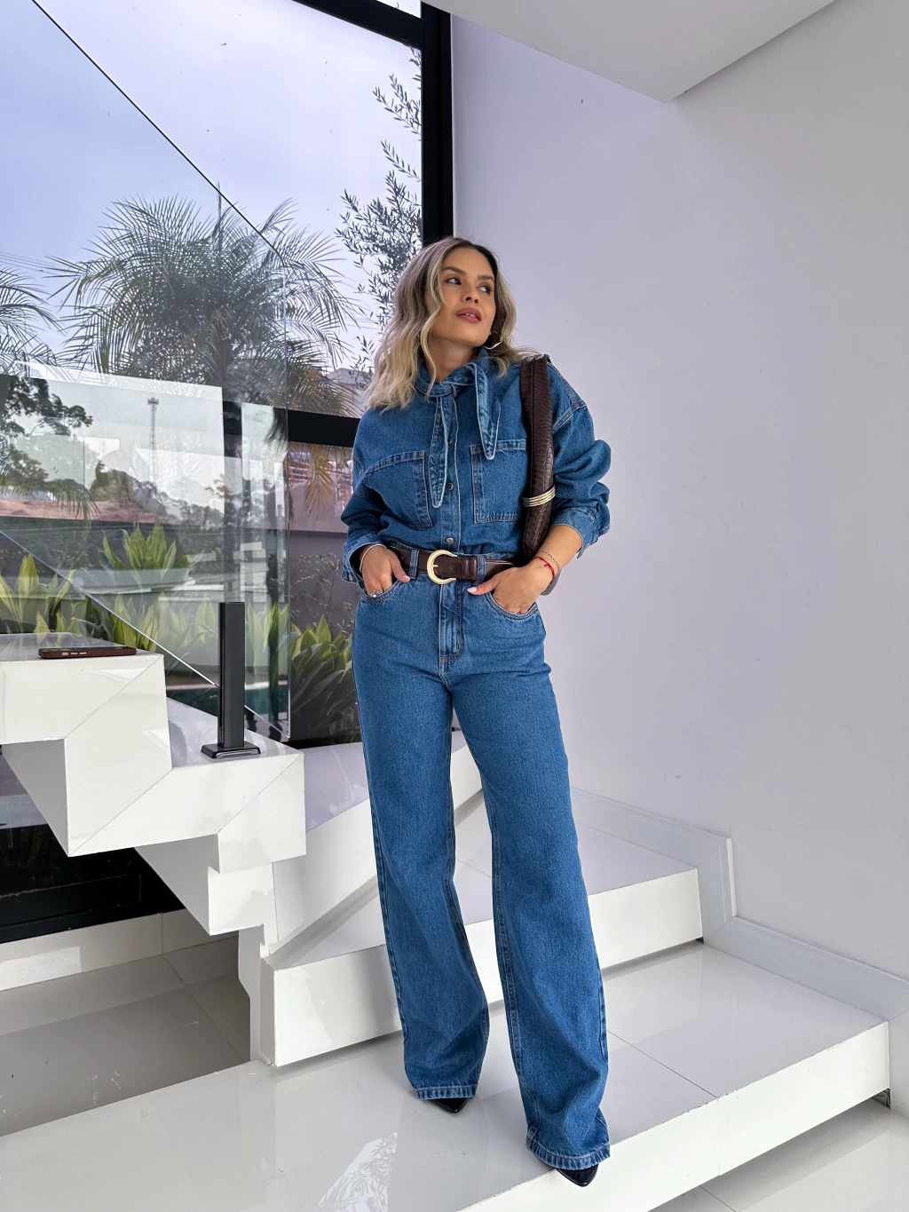 Descrição: Calça Jeans Reta, um clássico versátil para compor desde looks casuais até produções mais elaboradas. Possui fechamento por zíper e botão, além de passantes no cós para uso com cinto. Conta com dois bolsos frontais funcionais e dois bolsos posteriores, garantindo praticidade no dia a dia. Com modelagem reta, oferece caimento confortável e atemporal.